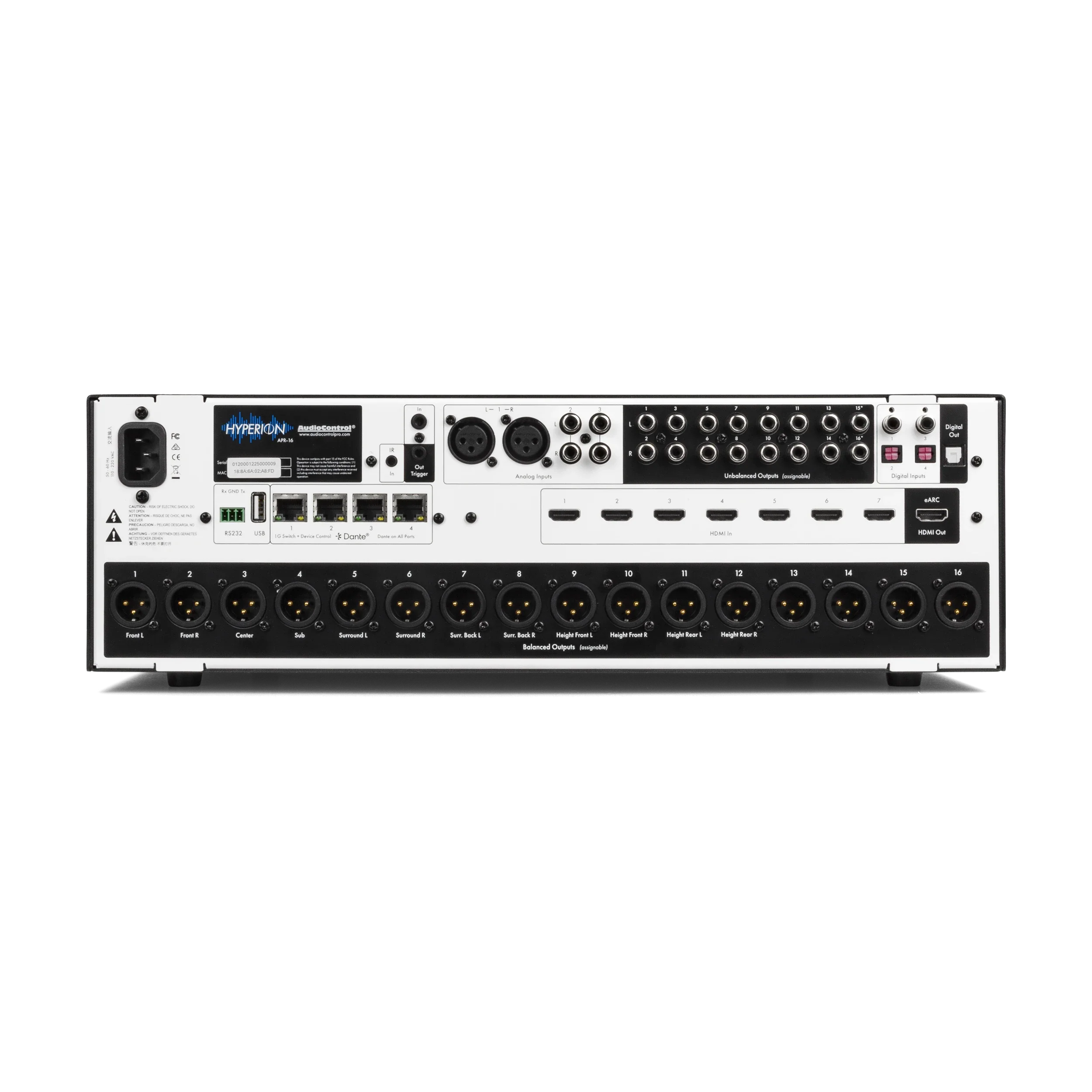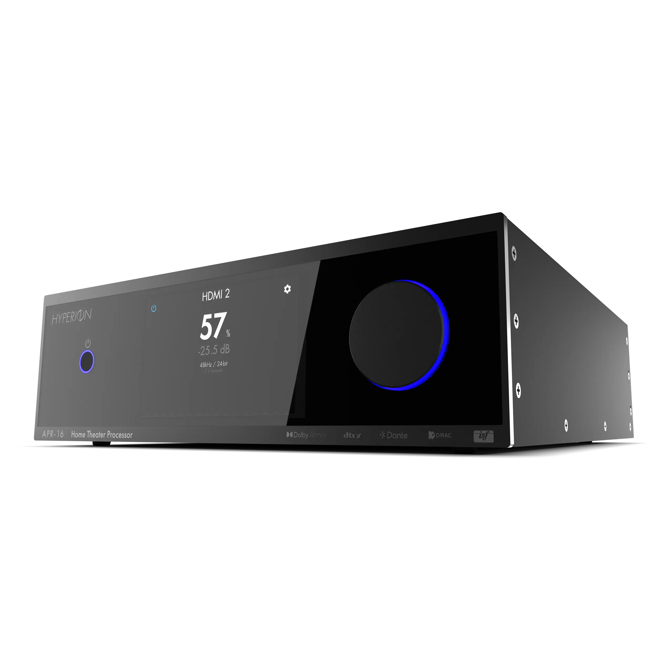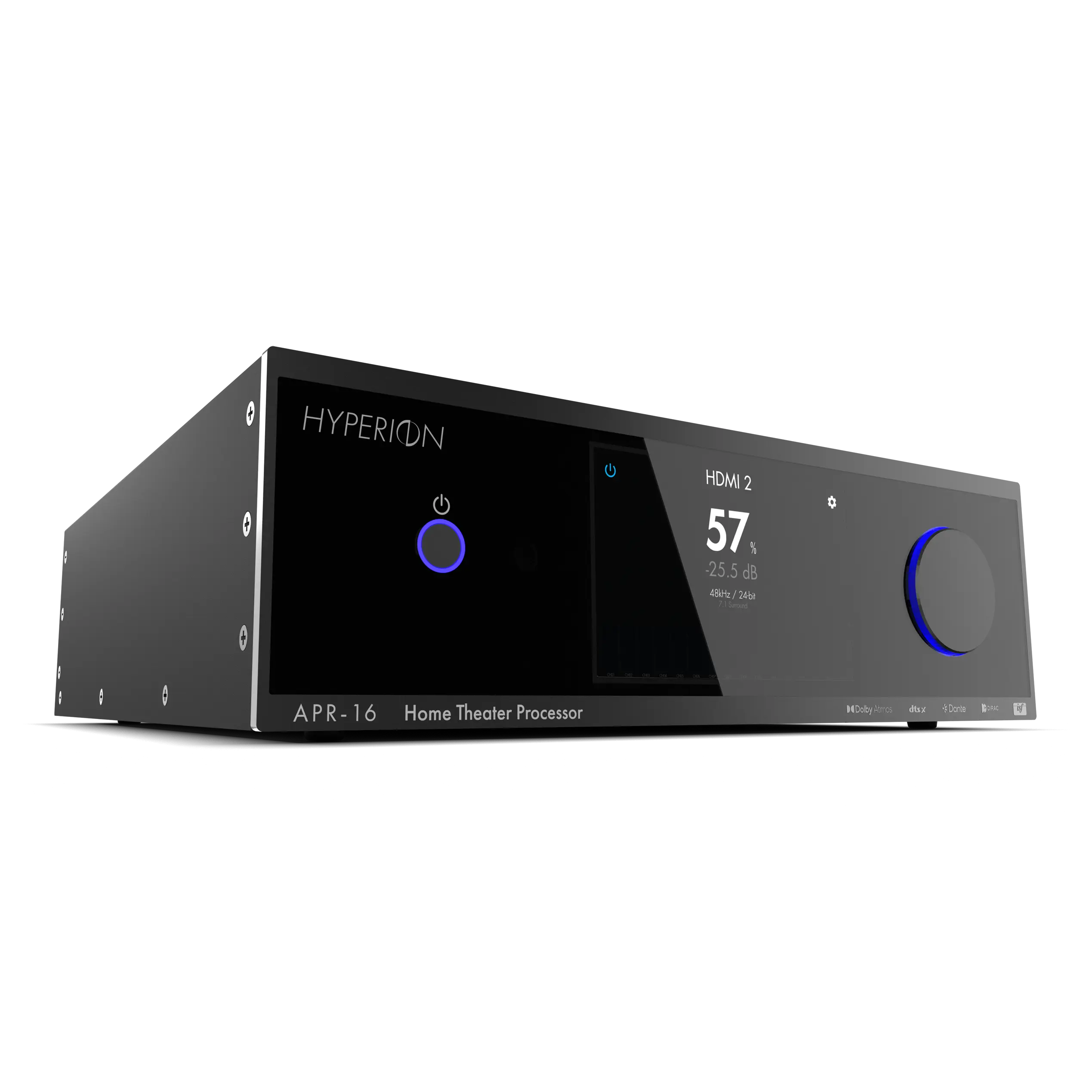 The APR-16 fully leverages DIRAC-licensed technologies to minimize unwanted acoustic effects imposed by the listening environment that compromise loudspeaker performance. Dirac’s Room Correction, Bass Control, and Active Room Treatment algorithms seamlessly integrate with Hyperion’s advanced, high-performance ARM-based DSP architecture, working in real-time to balance loudspeaker response for spatially accurate, optimized playback across all audio sources.